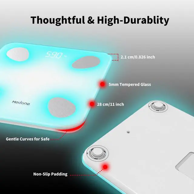 Bluetooth Connectivity & Dr Weight App Integration: Our Body Fat Scale Syncs your data in real-time with popular health apps. Enjoy seamless data sharing and privacy protection with secure cloud storage through the app.