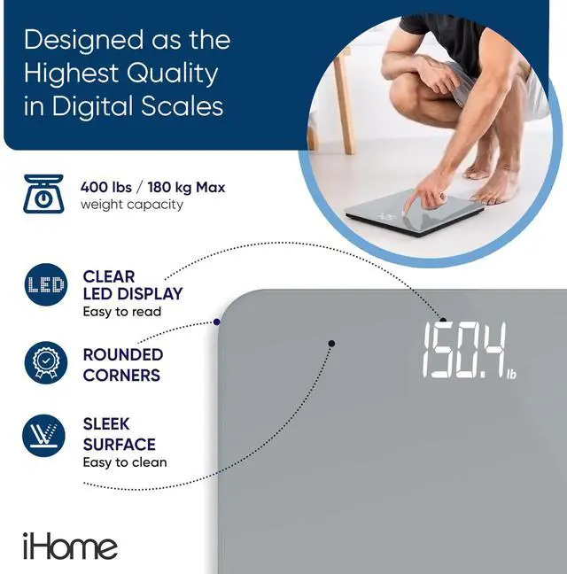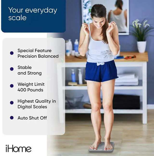 • Stable and Strong: With an industry leading 11 Inch X 11 inch scale platform, this scale is comfortable and stable to stand on. Whether you call it a body scale, digital bathroom scale for body weight, weighing scale or a weigh scale, iHome has you covered!