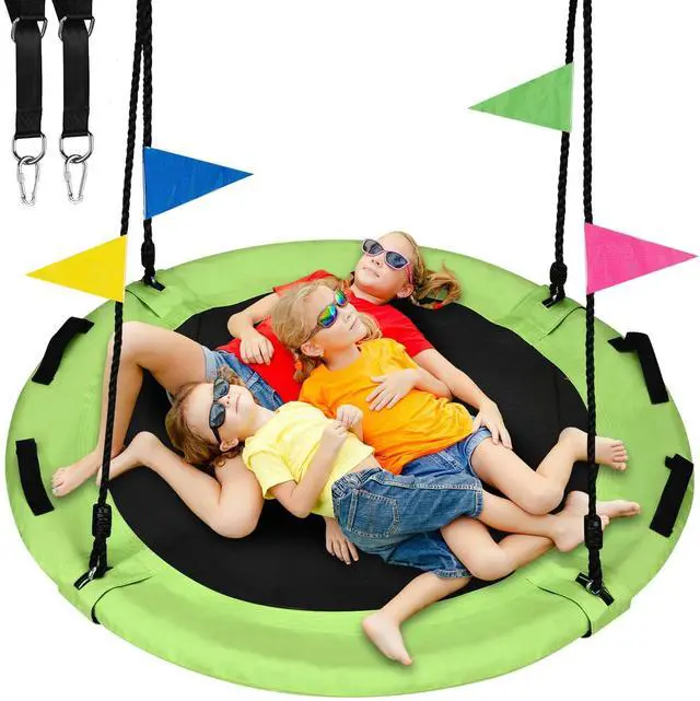 48 inch Tree Swing, Larger Saucer Flying Swing for Whole Family, 900lbs Weight Capacity, with Adjustable Hanging Straps, Swing Sets for Outdoor Playground, Yellow-green