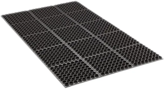 Increases the comfort and safety standards at the workplace. Raised-rib design maintains superior traction in wet and dry conditions. The square edges provide drainage and durability ideal for foodservice environments. Heavy-duty rubber construction allows easy drain-through of liquids and debris. Total Confidence Warranty.
