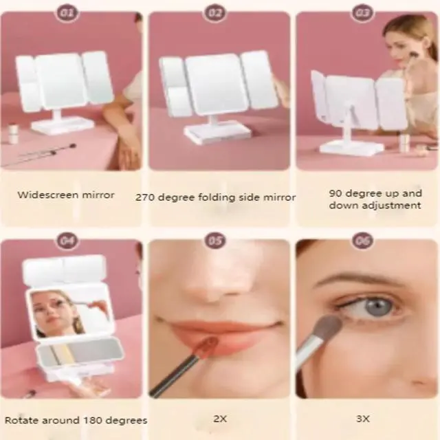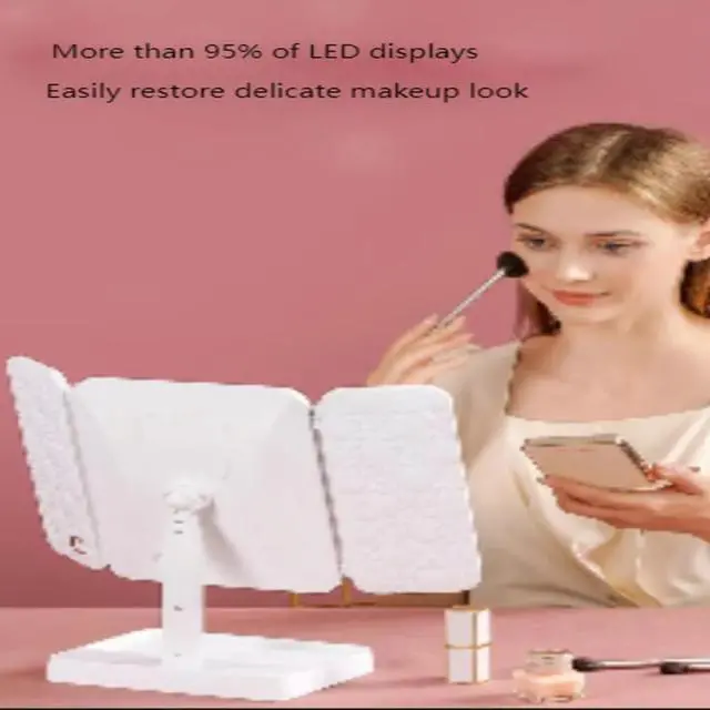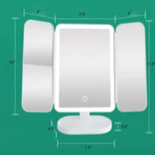 Elevate your makeup routine with the CARGTXY Tri-Fold Lighted Vanity Mirror. Featuring 3X/2X/1X magnification for precise application, this premium mirror boasts a 180° swivel design and intelligent touch control to adjust the 21 LED lights. Crafted from durable ABS material and mirror glass, it provides a clear, scratch-resistant reflection for flawless makeup. Whether powered by USB or 4xAAA batteries, this versatile mirror is perfect for home or travel use.