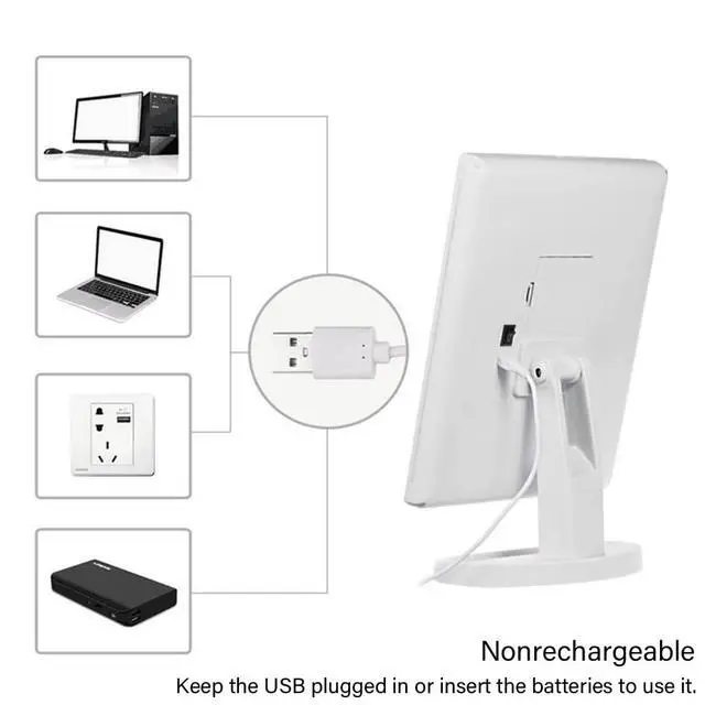 KOOKIN Personal Desktop Lighted LED Makeup Mirror sold by Pretty angel Suitable for home or travel makeup use. Perfect gifts for teen girls, teen girl gifts, Birthday gifts, Mother's Day gifts for women, Christmas gifts for teens, room decor for teen girls, dorm room essentials for girls 16pcs LED lights that display a clean, bright reflection,you can make up whenever and anywhere you go, even in poor lit area or at night Made by ABS plastic which makes mirror glossy, sturdy, without risk distortion like metal, resistant to scratch, chemicals, heat, finger prints The light up makeup mirror can stay stably on table. Base recess can hold some jewelry and cosmetic like necklace, earrings, rings, lipsticks etc The light up mirror for makeup has a master switch button at the back, once you turn off the main switch the led light wont light up even when the mirror gets powered ------ How To Use: 1. Put 4pcs AA batteries or connect the USB to power on 2. Turn on the switch button on the back of the mirror 3. Quickly touch the rounded sensor switch on the front of the mirror, then the light will be on 4. Press long to dim and brighten the lights 5. When you finish using, touch the sensor switch again, and the lights will be off. Press the rear switch button to OFF position to save power ------- Specifications: Material: ABS Plastic Dimension: 6.5*8.9*10.6 in LED lights: 16pcs LED control: Touch Screen ON /Off, long press to dim mode Power source: 4 * AA battery or USB charging battery not included, USB cable included ------- Packages Including: 1 x Make Up Mirror with Lighting 1 x USB Cable 1 x Use Manual compact travel mirror, lighted vanity mirrors, Hollywood-style vanity mirror, mini Smart Makeup Mirrors, adjustable lighting, portable mirror, LED lighting , optimal illumination, ample lighting, grooming, on-the-go touch-ups, convenient flawless makeup, convenient for travel, for small spaces or tight corners, style and functionality, modern, fashion, sleek, women gifts, desk make mirrors, bathroom table small beauty mirror, room décor for teen girl, stand cosmetic mirror, christmas gifts, Tabletop Handheld mirror, Countertop, Make Up Mirror, 12-14 16-18 year old perfect stylish trendy practical gift for teen girls, perfect for teen girls' bedroom, table mirror, desk mirror, vanity mirror, led makeup mirror, travel mirror with light, gifts for women, mother day gifts from daughter, makeup mirror, mirror with lights, makeup mirror with lights, lighted makeup mirror, mirror for desk, light up mirror, desk mirror with light, make up mirror with lighting, small vanity mirror, light up mirror for makeup, light up makeup mirror, teen girl gifts trendy stuff, dorm room essentials for girls, gifts for teens girls 16-18, teenage girls gifts ideas, 16 year old girl gifts, gifts for teen girls 12-14, gifts for teenage girls, gifts for teen girls 14-16, valentines day gifts for teen girl, light up makeup miirror, lighted makeup mirror
