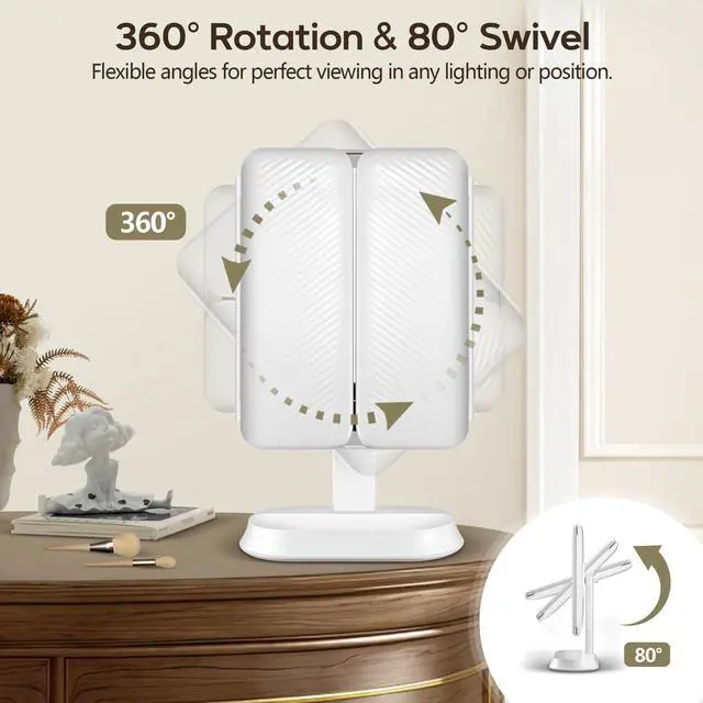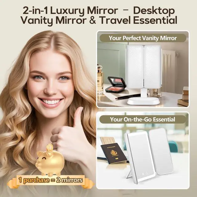 Of course! Buy once, use 2 ways: home desk mirror + travel mirror. Plus 4 level magnification, 360° rotation, Type C rechargeable, 80 LEDs, & premium materials – others can’t match this quality!