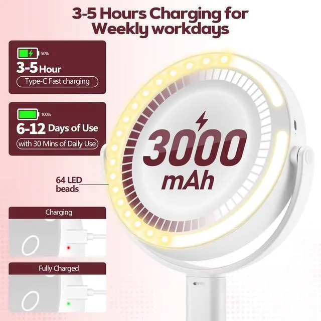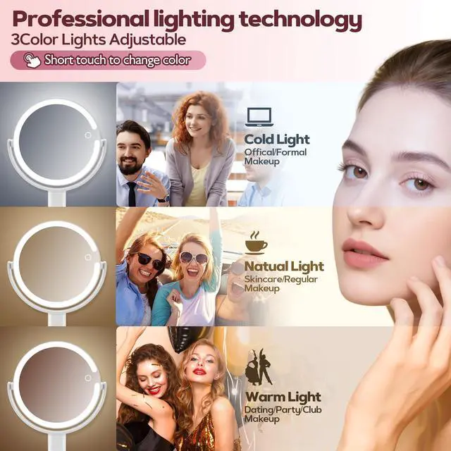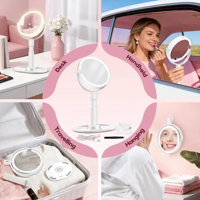 Ideal for vanity tables or bedrooms for daily precise makeup. The detachable mirror can be hung in bathrooms for skincare routines post-cleansing. Keep it in offices for quick pre-meeting touch-ups, or pack it in bags for business trips and travels.