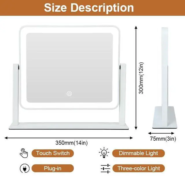 Product Overview: YEKKOPT Lighted Makeup Mirror with Touch Control Elevate your beauty routine with the YEKKOPT Lighted Vanity Mirror. Designed for precision and convenience, this mirror features dimmable LED lighting with three color modes (Warm, Natural, Cool) to simulate any environment, ensuring flawless makeup application day or night. Enjoy effortless adjustments with sensitive touch controls for brightness and lighting mode. The mirrors versatile 360° rotation (vertical and horizontal) and stable base allow optimal positioning for any spacewhether on your bedroom dresser or bathroom counter. Its sleek, modern aesthetic and functional design make it a perfect addition to your daily grooming ritual.