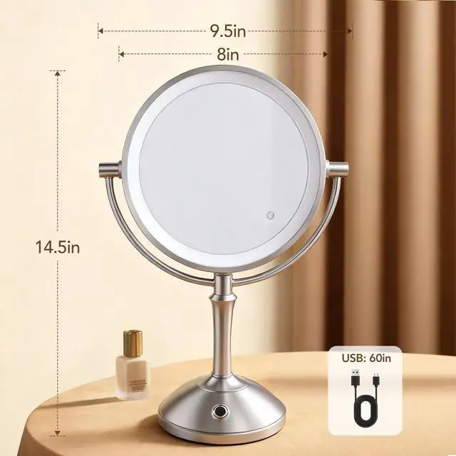 This vanity mirror has a built-in 3000mAh battery, which can be used for 5 Hours Working after 2 Hours charging.