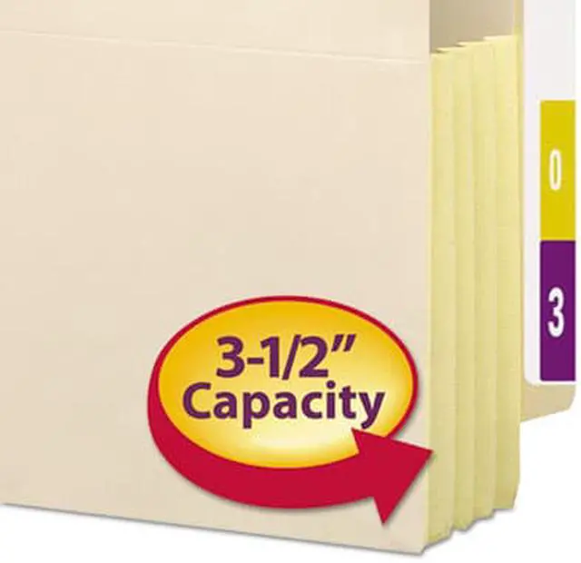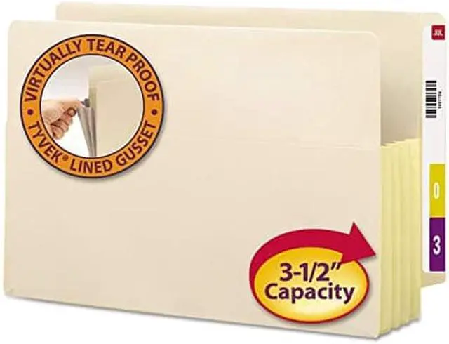 Keep government reports, depositions and other lengthy files organized by using these legal-size manila straight-cut tab pockets. Enhance your filing system with this box of 10 Smead manila legal-size straight-cut end tab 3.5-inch expansion pockets. Gussest are reinforced with tear resistant material for long-lasting durability. These Smead 3.5-inch expansion end tab pockets come in a box of 10, so you can quickly file away multiple paper-intensive records.