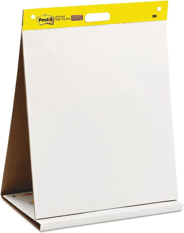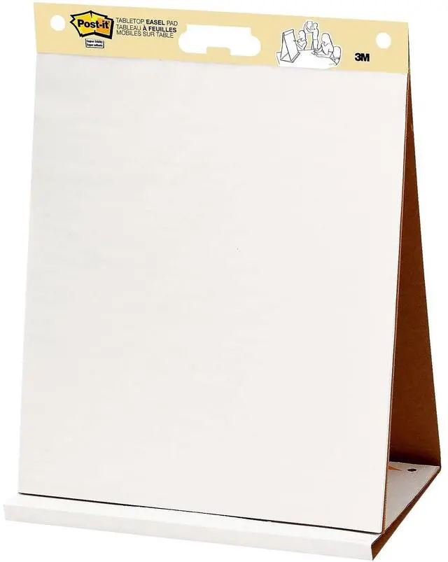 Repositionable self-stick sheets of premium white paper resists marker bleed-through. Adhere to most surfaces and can be reused without causing damage to walls. Protective carrying case. Built-in easel stand sets up anywhere. For tabletop learning and small group activities.