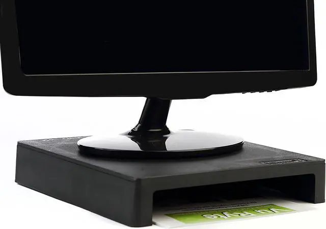 The VUR 4855 stacks upon itself, allowing each individual user to personally adjust the height of their monitor in 2" increments. Each unit is black and will support technology up to 60 pounds.