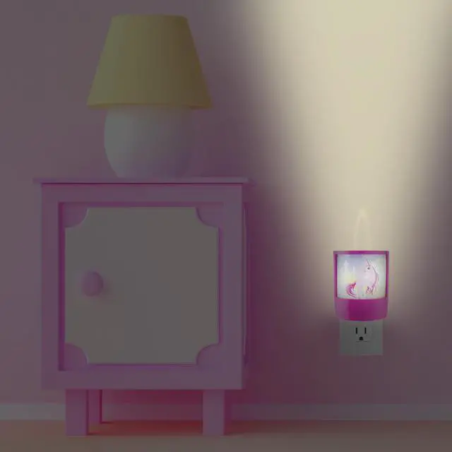 The Unicorn Shade Night Light has a magical whimsical design with a shade to diffuse the light evenly into the room. Its energy-efficient LED bulb casts a relaxing, warm and soft glow. The automatic dusk to dawn control saves money and energy by operating the light only in the dark.