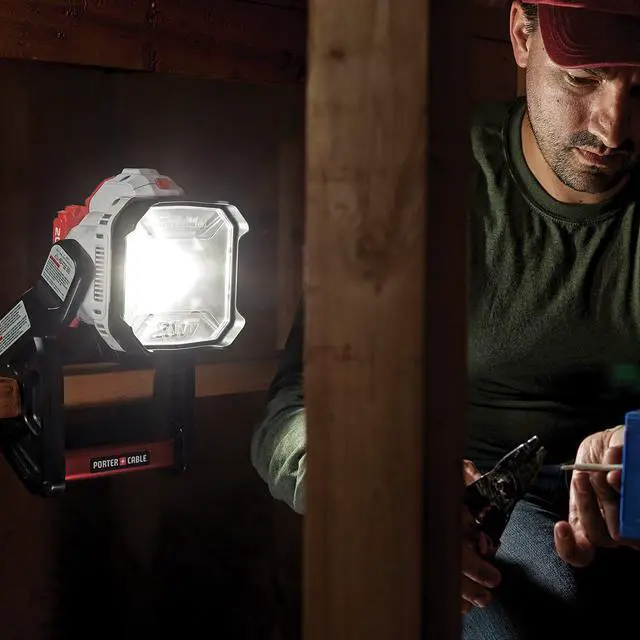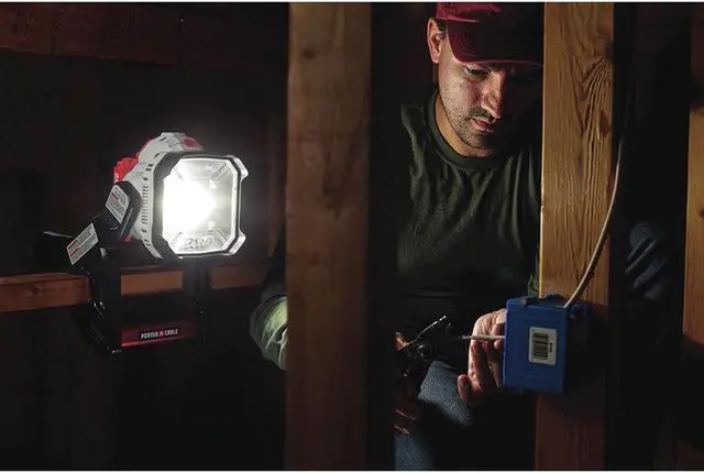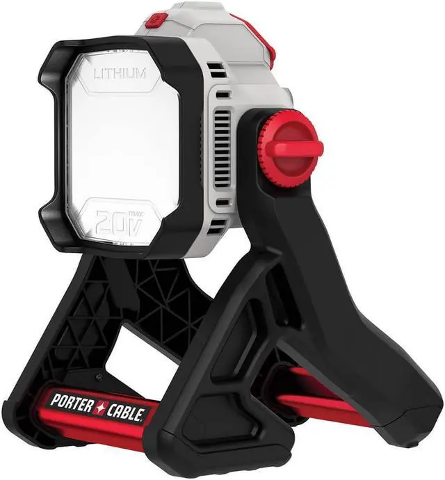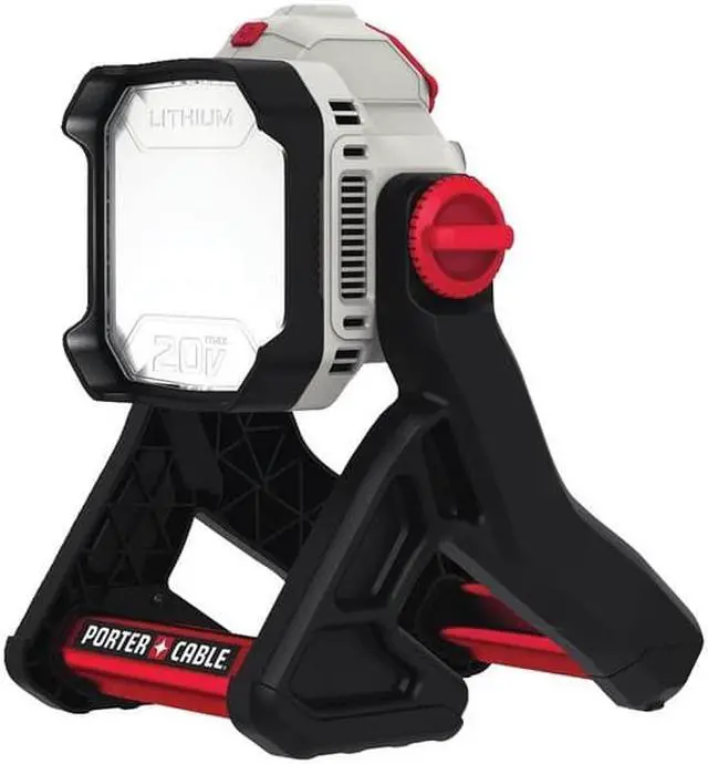 PORTER-CABLE PCCL500B 20-Volt MAX* Dual-Power LED Area Light1, 900 lumens max outputAdjustable high/low brightnessCan run corded or on 20-volt batteryUp to 10 hours of run time (low setting, with PCC685 4Ah battery)1/4 dia screw thread for tripod compatibility20-Volt MAX* Dual-Power LED Area Light