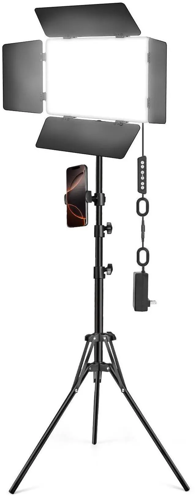 Useful Lighting Accessories The four way barn doors help modify the beam spread. The aluminum alloy light tripod stands are solid and offer a height range from 24inch to 63inch (92cm to 160cm). The cable length 9.8. Light weight and durable design allow you to carry around conveniently and move easily.