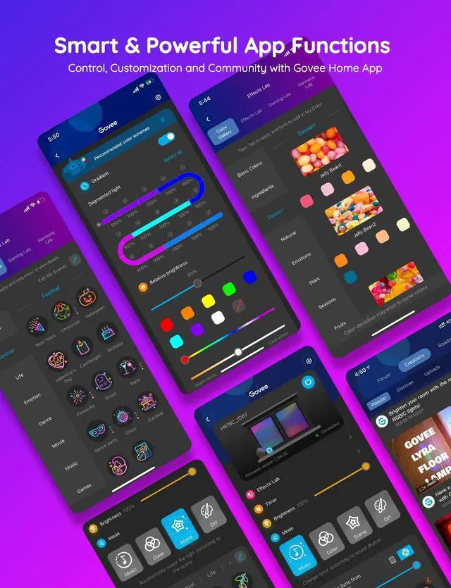 Extensive DIY Function: There are different custom lighting options to DIY. Then, you can share your color changing LED lights on APP community. As well, you will find more inspiration to bring vivid colors in the Govee Light Studio.