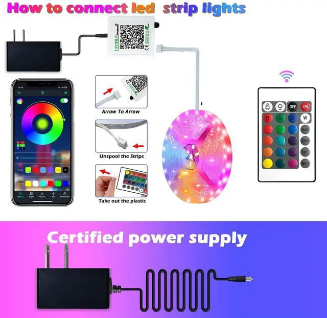With Timer function, you can set a time schedule, the strip lights will turn on/off automatically. You don’t need to turn it on/ off manually.
