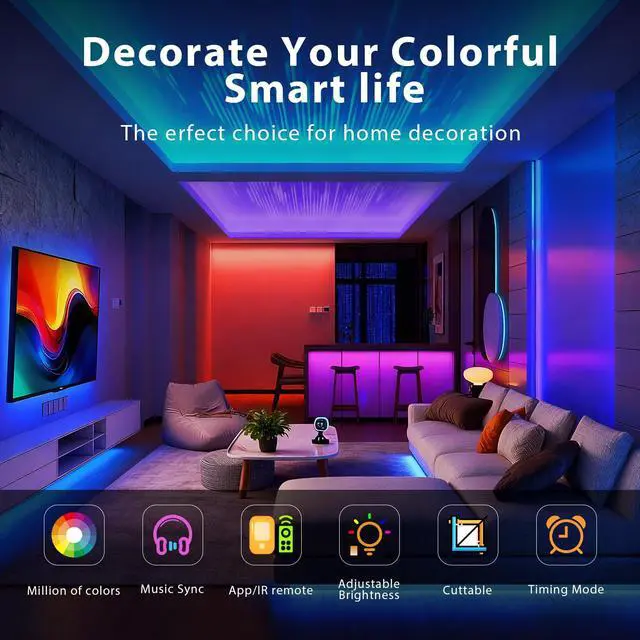 Home/Room Decor: The led light strips has a lot of scene modes to create a festive atmosphere that matches your mood or activity, the light strips is long enough for bedroom, ceiling, kitchen, living room, bar and party decoration, or everyday use