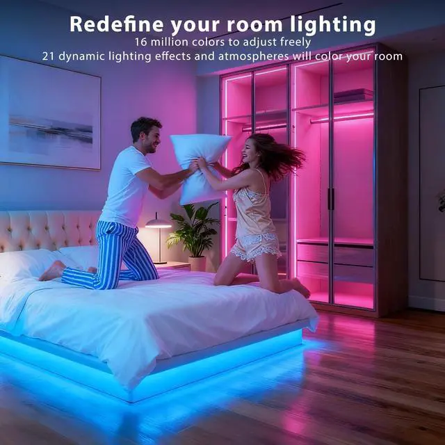 Smart Timing Settings: The led lights has color memory and setting the time function. You can pre-set the desired time and choose a suitable color for it to automatically turn on or off, putting you in a good mood for the day