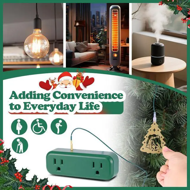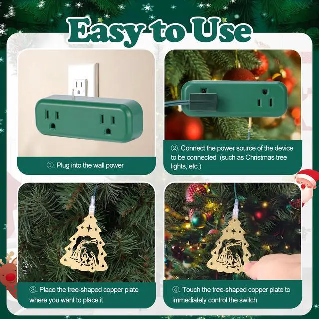 This touch light switch is designed as a Christmas tree decoration pendant with a 118.1-inch cord and 3-pin socket plug. It allows you to easily turn lights on or off with a simple touch, controlling up to 1,200 mini Christmas tree colored lights (600 watts). The switch is made of high-quality ABS and PC material with dual sockets, input voltage of 120V, total current of 10A, and total power of 1,200W. It's not just for Christmas; you can use it for indoor lighting and home appliances all year round. The elegant Christmas tree ornament design combines practicality and convenience, making it a thoughtful holiday gift.