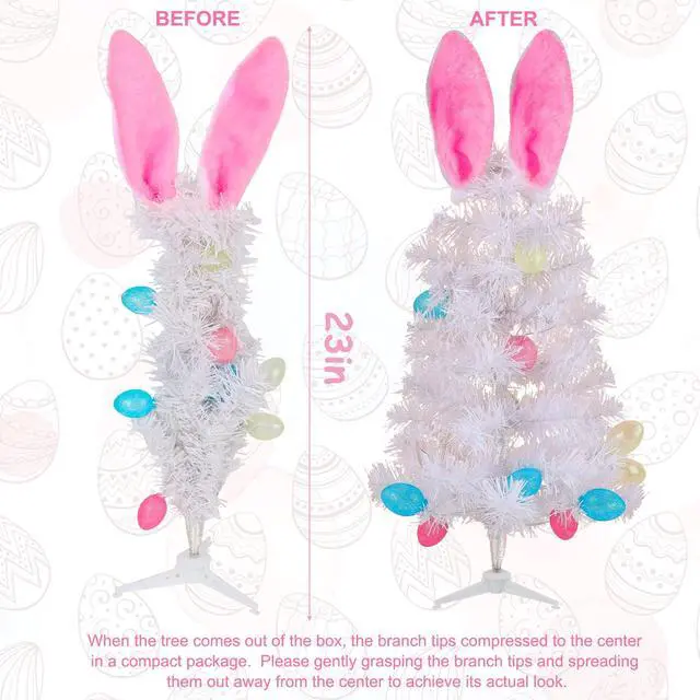 1.When the tree comes out of the box, the ears and branch tips compressed to the center in a compact package. Please gently grasping the branch tips and spreading them out away from the center to achieve its actual look.