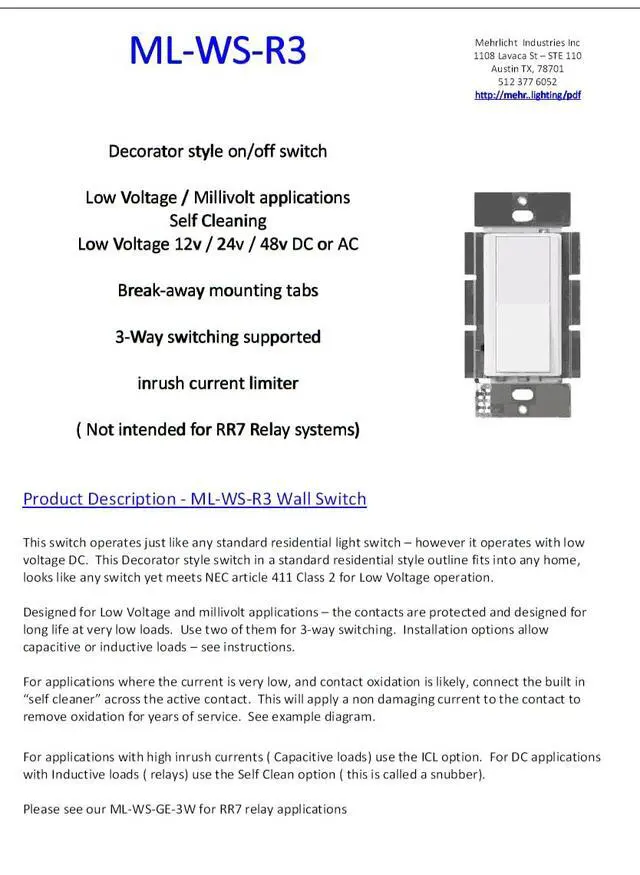 Conventional switches do not operate well at the low voltages and current of fireplace applications. The AL-WS-R3 switch was designed for low voltage and/or low currents - with a self cleaning feature that extends operating life. Use it to replace your existing switch that does not work anymore.