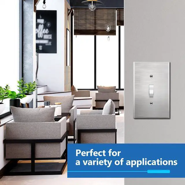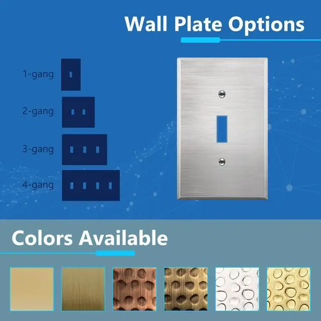 LIDER is setting the new standard for modern interior aesthetics with fashionable, high-quality wiring devices. The LMWP-11M metal wall plate is designed to replace the wall plate on a standard toggle light switch or rotary dimmer for industrial-level strength and protection. This 1-gang, mid-size wall plate measures 4.88 x 3.11 to cover a little more wall space than a standard-size wall plate would, making it perfect for covering up any damage to the wall that may have happened during installation. Made from heavy-duty 430 stainless steel, this metal wall plate is non-combustible and offers both heat and corrosion resistance to excel in even the most physically demanding applications. This makes the metal wall plate perfect for residential, commercial, and even industrial locations.