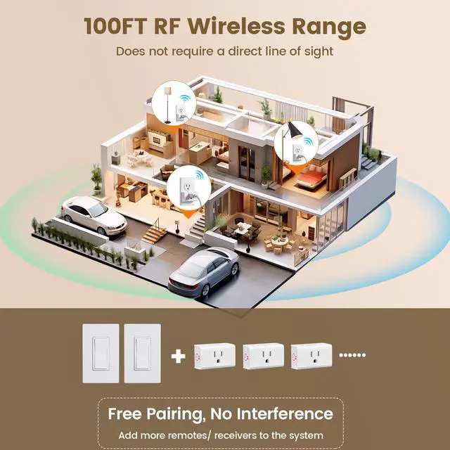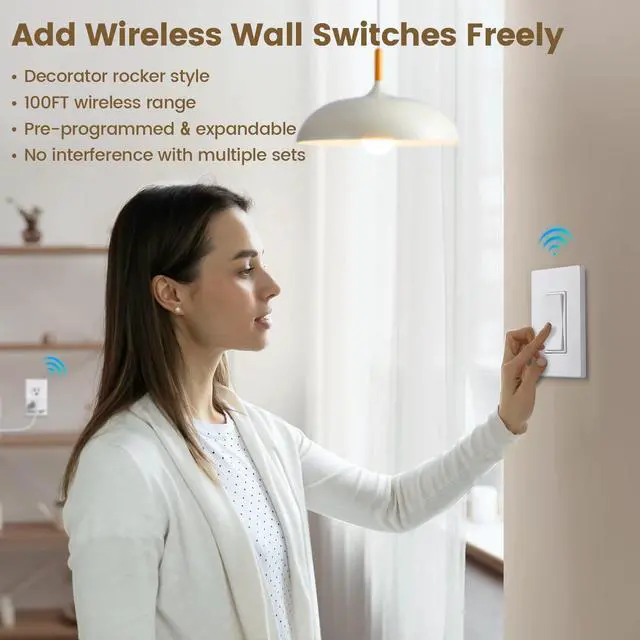 • Expandable and Customizable System: Add extra wireless remote wall switch and outlet units to expand control; manage one light with multiple remotes or control multiple devices with a single remote control outlet wall switch; perfect for versatile setups