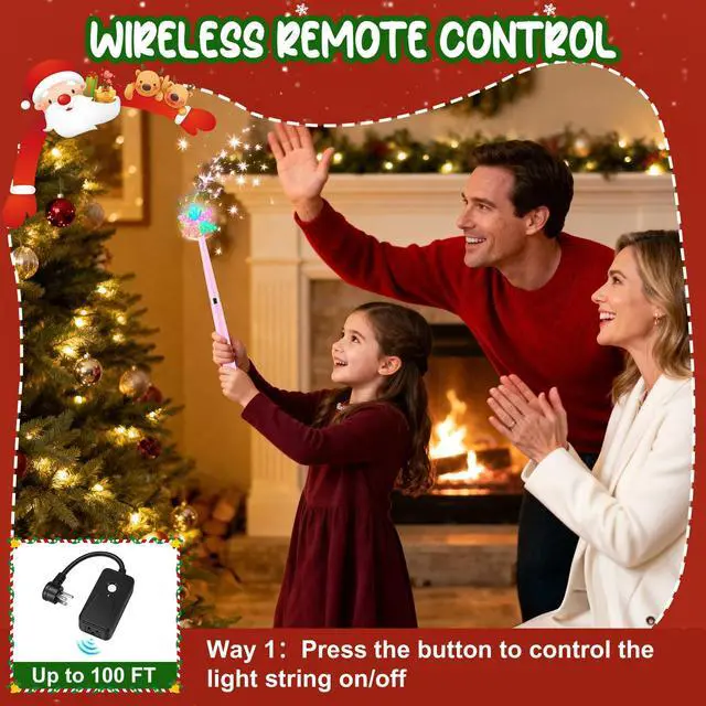 CONVENIENT WIRELESS CONTROL: Say goodbye to the hassle of tangled cords! The Bonfix Wireless Remote Control Outlet allows you to effortlessly manage your Christmas tree lights from up to 100 feet away. Utilizing advanced radio frequency technology, it connects seamlessly with the outlet, enabling you to turn your lights on and off with just a button press using the Magic Light Wand.