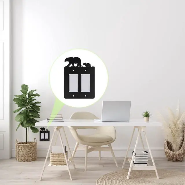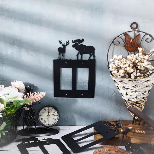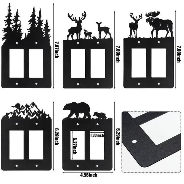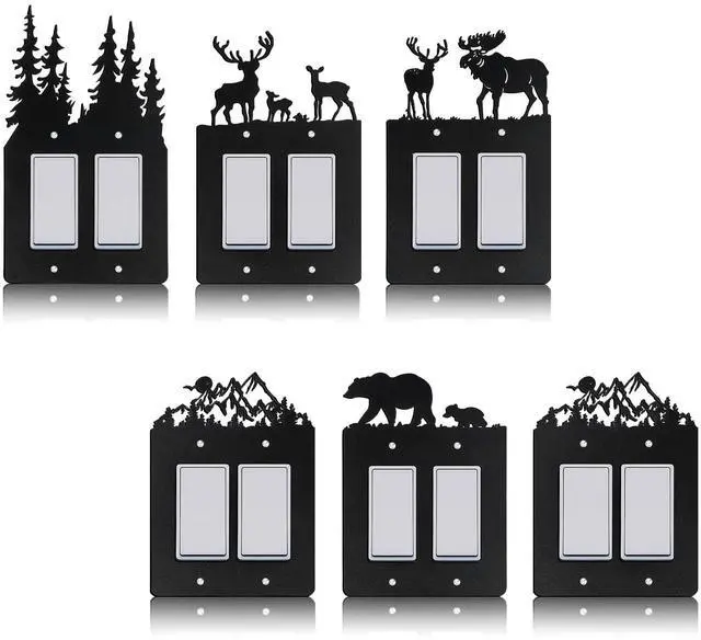 6 Pcs Metal Bear Light Switch Cover Plate Moose Tree Mountain Elk Forest Outlet Plate Toggle Outlet Wall Cover for Home (Double Rocker)