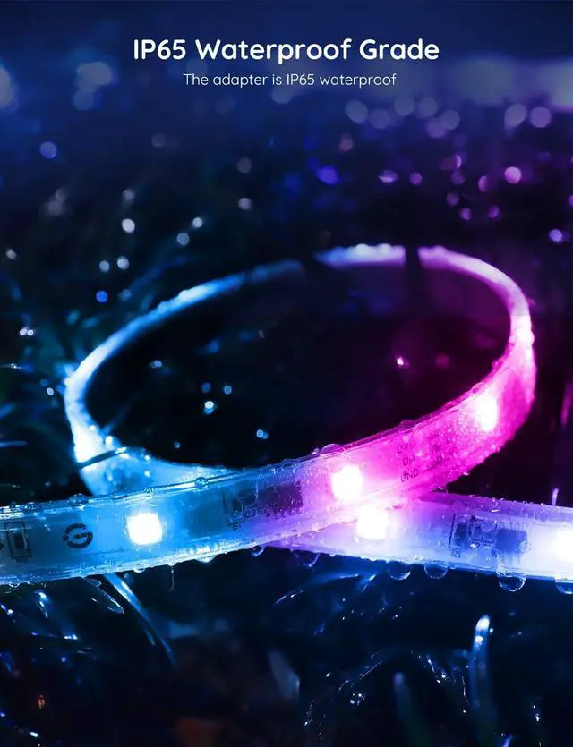 Durable Protection: With an IP65 rating, this outdoor light strip is dust-tight and protected from low-pressure water jets coming from any angle. Built tough for outdoors, making them your go-to lights to serve as outdoor patio decor.
