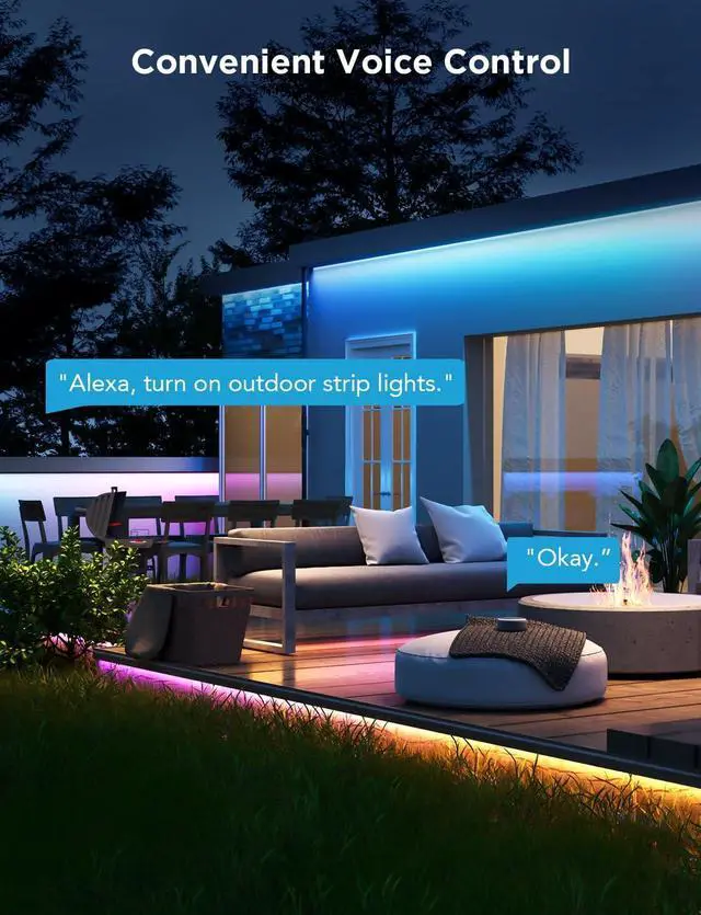 Smart Wi-Fi Outdoor Lights: Install, leave, and enjoy your smart outdoor led strip lights with easy app control. Set timers, choose colors or scenes, and adjust brightness levels to schedule your Govee outdoor lights around your daily routine.