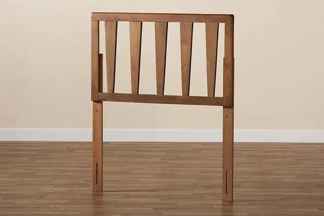 Baxton Studio Duncan Modern and Contemporary Ash Walnut Finished Wood Twin Size Headboard - 11100, Accent your bedroom with the unique, geometric design of the Duncan headboard. Made in Malaysia, the Duncan is constructed from wood showcasing a natural ash walnut finish. Its angular design creates a sleek silhouette that allows light to flow more easily throughout the room and provide a more open feel in tight spaces. Requiring assembly, the headboard is supported by sturdy wood legs that feature six pre-drilled holes for easy height customization. Providing excellent back support when sitting up in bed, the Duncan headboard enriches any bedroom.