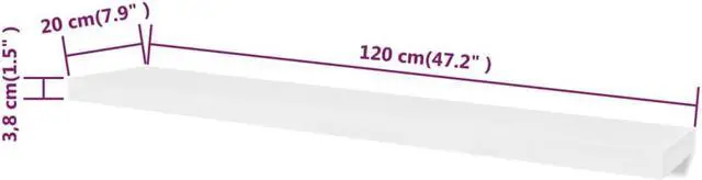 Shelf size: 47.2" x 7.9" x 1.5" (W x D x H)
