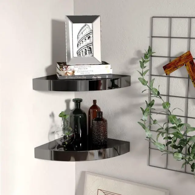 This set of 2 stylish corner shelves is ideal for displaying your favorite books, decoratives, photos, awards, etc. This display shelf, made of quality honeycomb MDF and strong metal, is stable and durable. With an invisible mounting system, the wall shelf is easy to install and serves as the perfect place to store the items such as awards, books, collectables, ornaments, etc. This floating shelf suits any decor and turns an empty wall into a designer feature!