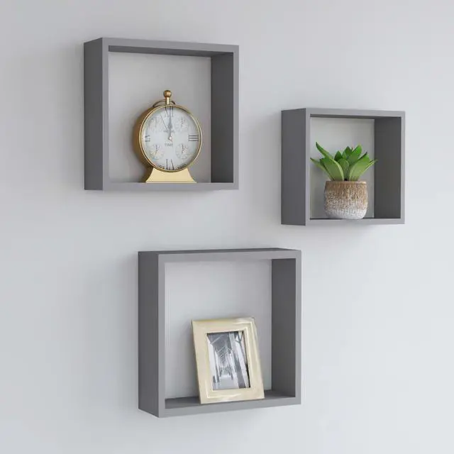 This set of 3 wall cube shelves is meant to be the focal point of any room. These cube organizers are made of MDF, which are stable and durable. With an invisible mounting system, these corner shelves are easy to install and serve as the perfect place to put items such as awards, books, collectibles, ornaments, etc. The corner shelves are suitable for most decor and easily turns an empty wall into a design feature!