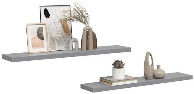 This set of 2 stylish wall display shelves are meant to be the focal point of your home. With an invisible mounting system, this wall shelf is easy to install and serves as the perfect place to place the items such as awards, books, collectibles, ornaments, etc. This rack is made of quality honeycomb MDF and metal frame, which is stable and durable. This display shelf is suitable for most decor and turns an empty wall into a design feature!
