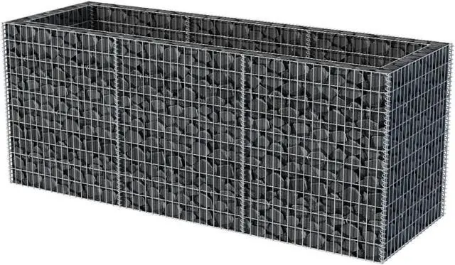 vidaXL Gabion Raised Bed Steel 106.3"x35.4"x39.4" - 142554, This gabion planter presents a convenient way of creating a strong yet stylish border for a flower or plant bed in your garden or on your patio. The sturdy gabion has been designed to be filled with rocks or gravel. Made of rustproof and weather-resistant galvanized steel, the gabion is very stable and durable. The mesh grid is formed by welding transverse and longitudinal wires at each and every intersection for extra stability. Please note that stones and plants are not included in delivery.