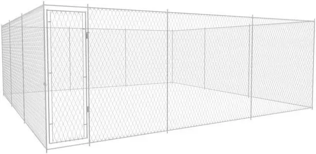 vidaXL Outdoor Dog Kennel Galvanised Steel 18.7'x18.7'x6.1' - 145034, This versatile dog kennel has multiple uses: playing, exercising, training, or simply keeping your dogs safe. It will be the perfect play paradise for your furry friends! This large dog kennel provides ample exercise space. The chain link fence helps prevent mischief or unexpected accidents, while enabling ventilation. Thanks to the sturdy steel construction, this high-quality dog kennel is durable. The gate is equipped with a lock to keep your dogs extra safe. The dog kennel is easy to assemble.