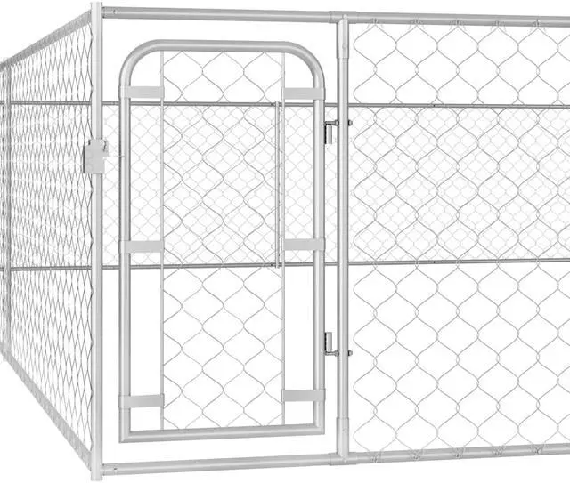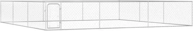 vidaXL Outdoor Dog Kennel Galvanised Steel 236.2"x236.2"x39.4" - 170821, Our versatile dog kennel is ideal for your dogs to play, exercise, train or just keeping them safe. It will be the perfect play paradise for your furry friends! The playpen is made of heavy-duty galvanised steel, making it durable and suitable for outdoor use. The chain-link mesh sidewalls help prevent mischief and unexpected accidents while enabling air ventilation. The dog playpen is equipped with a hinged door and lockable system for extra security and safety for your dogs. The dog kennel is easy to assemble.