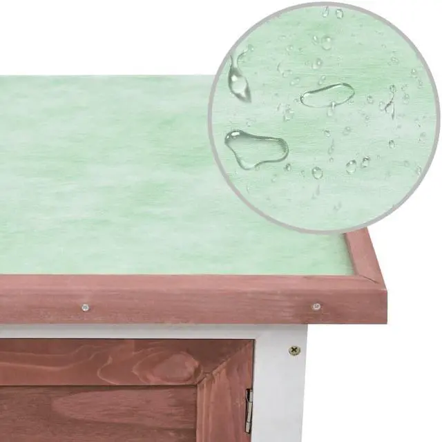 The rabbit hutch is built with high-quality wood frame, making it a strong and safe enclosure that lasts for years. Its green asphalt roof keeps rain away while the cozy cubby makes the perfect sleeping quarter. And the top roof can be opened to catch or release your pets.