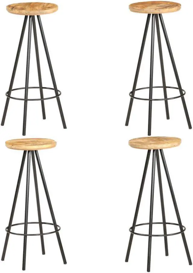 vidaXL Bar Stools 4 pcs Rough Mango Wood - 286615, Our wooden bar stools feature a unique industrial look, making them a distinctive addition to any home, bar or restaurant. The bar chair is made of rough mango wood, a tropical hardwood with the strength to bear the weight. It also stands the wear and tear of time, making it sturdy and durable. The craftsmanship and the beautiful wood grains make every piece of furniture unique and slightly different from the next. Additionally, the powder-coated iron base with the built-in footrest provides extra stability for the stool. Important note: Colours vary from piece to piece, making each piece unique. The delivery is random as well.