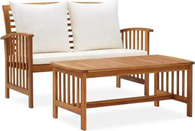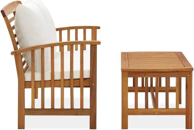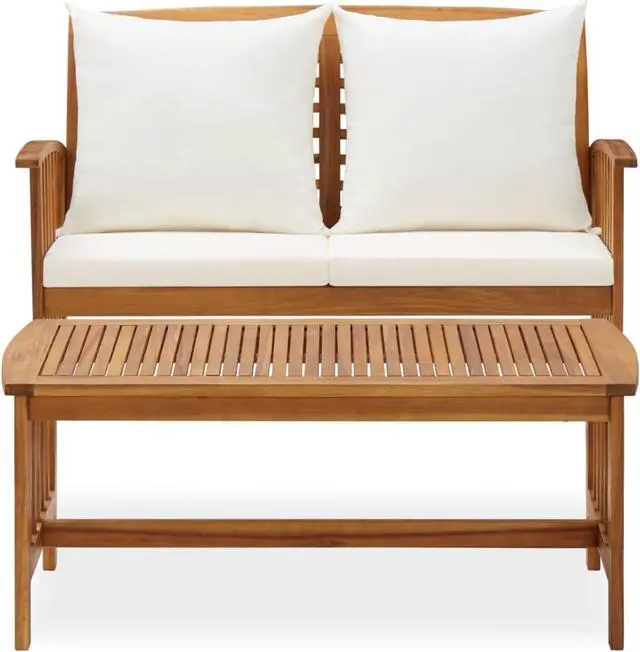 The wooden garden lounge set adds a vintage look and is specially designed for your garden, patio or other outdoor living space! The outdoor furniture set is built from a solid acacia wood construction with an oil finish, making it stable and durable. Thanks to the solid wood tabletop with slatted design, the coffee table offers you space to put your snacks, fruit baskets, decorative items, as well as other essentials. The seat cushion and back pillow make the bench comfortable to be seated. The backrest and the armrests add extra seating comfort.