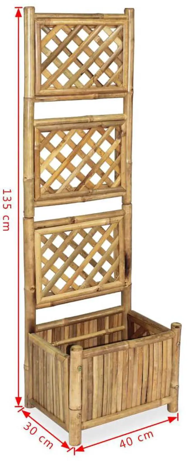 vidaXL Garden Raised Bed with Trellis Bamboo 15.7" - 43713, This garden planter presents a perfect way to grow a rich mixture of plants and flowers and is especially suitable for climbers with its trellis. This garden planter will make a practical as well as decorative addition to your garden, balcony, patio, etc. The planter rack is made of weather-resistant and durable bamboo that gives your outdoor living space a tropical flair. The vertical design takes up less space. Assembly is easy.