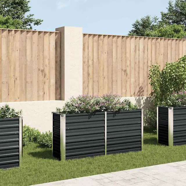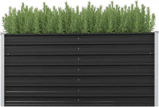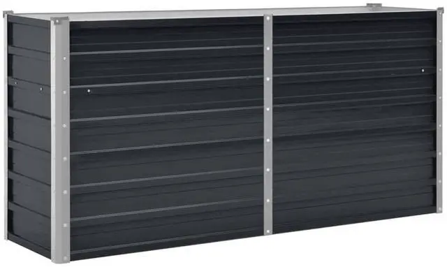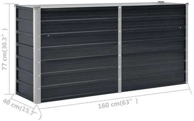 vidaXL Garden Raised Bed Anthracite 63"x15.7"x30.3" Galvanized Steel - 45730, This metal garden raised bed would be a great choice for DIY enthusiasts to decorate their gardens, balconies or patios. The planter is deep and wide enough to hold a large amount of soil, as well as provide ample space for your plants, vegetables, herbs and flowers. Additionally, made of heavy-duty galvanised steel, the planter pot is weather resistant, making it very practical for outdoor use. The planter needs assembly.