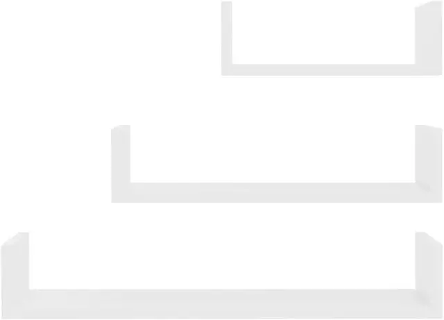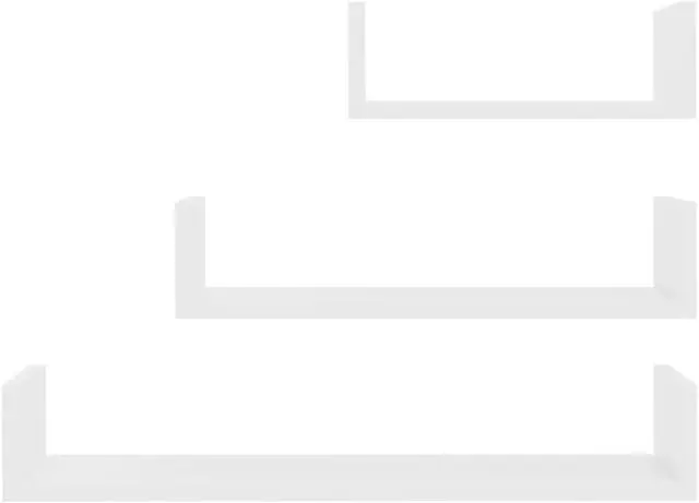This set of 3 wooded shelves perfectly combines style and functionality. Simply yet elegant, this set is a great option to enlighten any wall in the room. Contemporarily-designed, this set of quality shelves is an ideal choice for your kitchen, living room or wherever you need to place daily items. The shelves are made of engineered wood, which ensures it sturdiness, durability and long service life. The U shaped design offers perfect display or storage area for your books, CDs, flowers and other essentials. The shelves are easy to assemble.