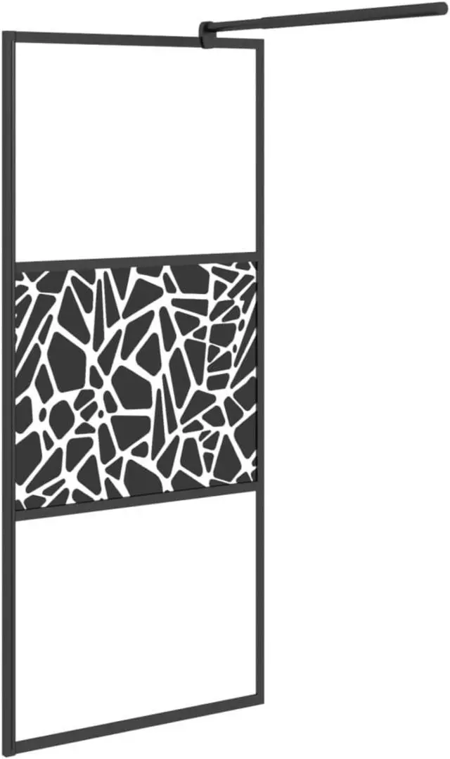 vidaXL Walk-in Shower Wall 35.4"x76.8" ESG Glass with Stone Design Black