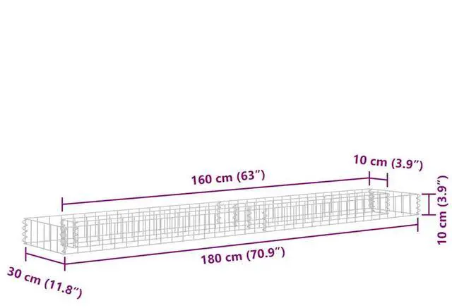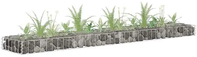 This gabion raised bed allows you to conveniently create a secure yet stylish border for a flower or plant bed in your garden or on your patio. The sturdy gabion is designed to be filled with rocks or gravel. Made of rustproof and weather-resistant galvanised steel, the gabion is very stable and durable. The transverse and longitudinal wires welded at every intersection offer extra stability to the gabion planter and also works as a mesh grid. Please note that stones and plants are not included in delivery.