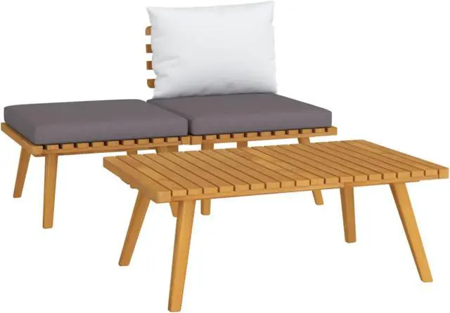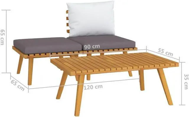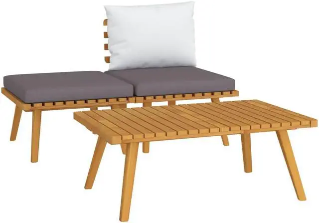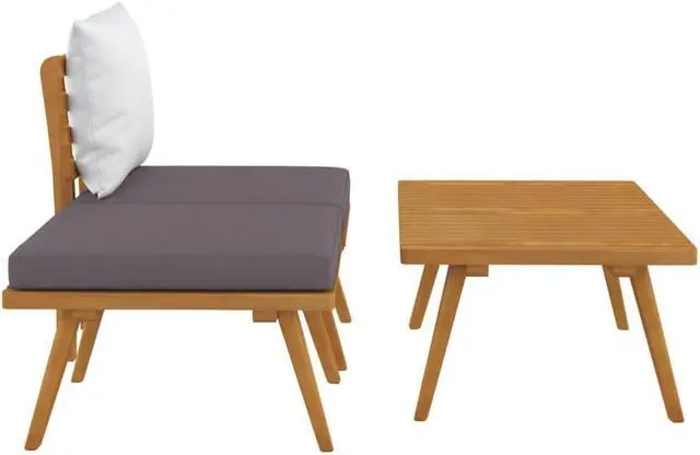 This garden lounge set is an excellent choice for relaxing and enjoying the weather, taking a nap, or chatting with your family or friends. With a timeless slatted design, the wooden lounge set adds a touch of rustic charm to your patio, terrace or garden. Made of solid acacia wood, the outdoor furniture set is weather-resistant and highly durable. Combined with the thickly-padded cushions, this patio lounge set provides the utmost comfort. You can combine it with other modular segments to create your own personal garden lounge set configurations!