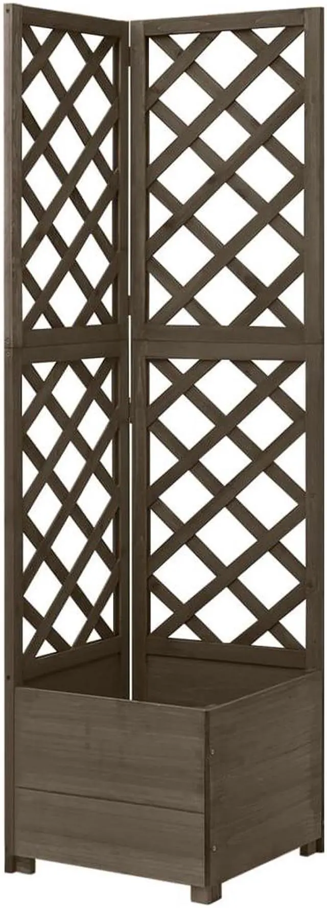 Decorate your garden or patio with beautiful plants and flowers with this corner trellis planter! This wooden planter is made of solid fir wood, making it sturdy and suitable for outdoor use. It features a flower box to accommodate gorgeous flowers. The trellis also offers stable climbing support, so the roses, ivy and other climbing plants can flourish. Additionally, this garden trellis can fit in the corner well and takes less space.