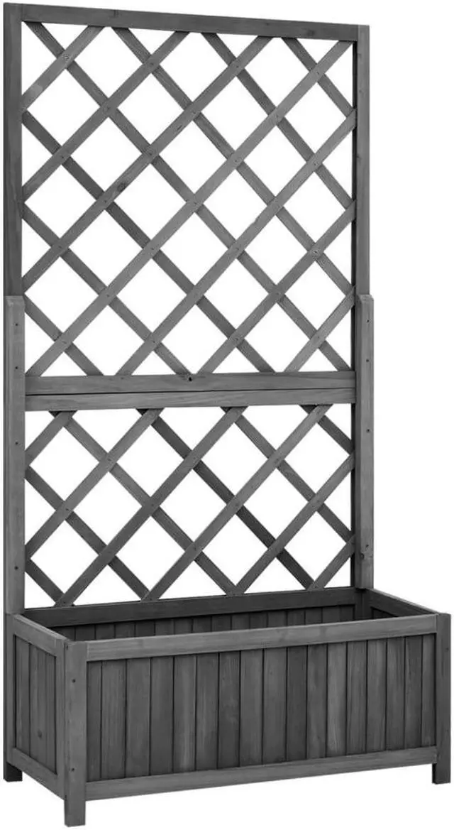 This wooden trellis planter is a perfect way to grow a rich mixture of plants and flowers. It is especially suitable for climbers with trellis. This trellis planter, made of solid firwood, is sturdy and suitable for outdoor use. The planter also has a flower box to accommodate a large number of green plants and flowers. Additionally, the built-in trellis offers excellent support for climbing plants.