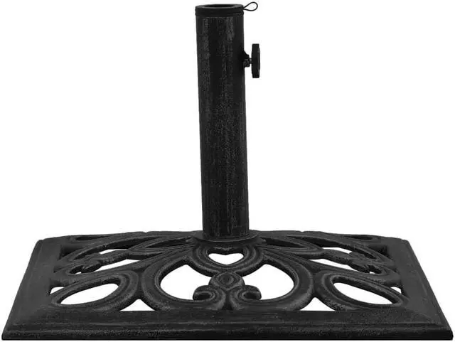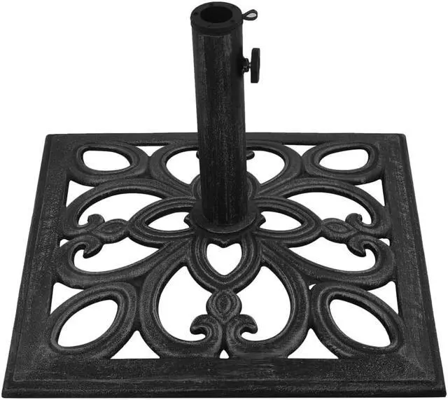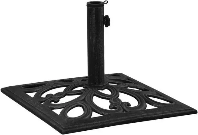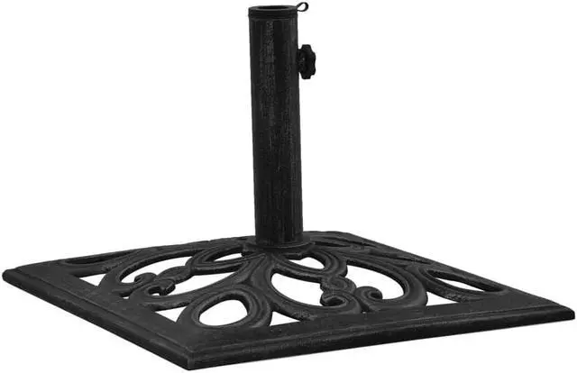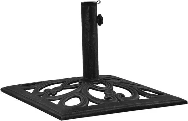 317764 vidaXL Umbrella Base Black 18.5"x18.5"x13" Cast Iron This solid umbrella base serves as a firm and sturdy base for your umbrella and will keep it in place. The durable cast iron ensures excellent stability. The supplied adapter is suitable for umbrella poles with diameter of 1.4", 1.5" or 1.9". The detailed scrollwork and charming floral pattern will add a classy accent to any garden or outdoor space.
