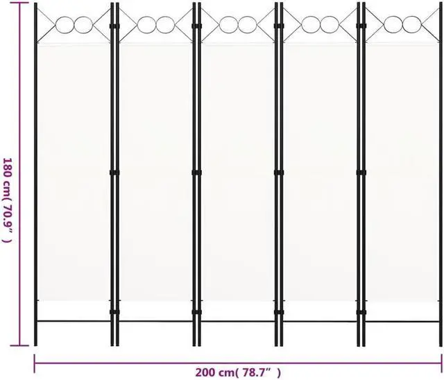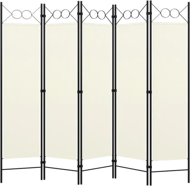 Our freestanding and practical 5-panel room divider can be used as a partition, privacy screen or for decoration. It provides ideal privacy in the bedroom or a compartment of the room. Top with circle design adds extra elegance. This room divider, made of powder-coated iron frame and fabric screens, can be easily folded when not in use.